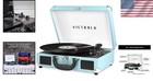 Portable Record Vinyl 3-speed Turntable - Teal Grain Color Suitcase Style