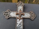 Fleur De Lis Wall Cross Cast Iron Rustic Tuscan Style Old World Decor 10 X 8"