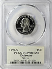 ✅ 1999-s Delaware 90% Silver Washington Quarter ~ Pcgs Pr69dcam State Flag Label