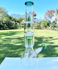16" Heavy Glass Bong Green Percolate Bongs Smoking Hookah Water Pipe 18mm Bowl