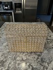 Beautiful Used Wedding Satin Card Box W/ Crystal Accent Flip Top Opening White