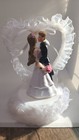 Vtg Wilton Chicago Wedding Cake Topper Bride & Groom White Tux Ceramic 2.75”
