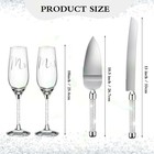 4 Piece Champagne Flutes And Cake Knife Server Set, Bride And Groom Toasting ...