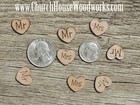 100 Qty 1" Mr Mrs Wood Hearts Table Confetti Wooden Wedding Decor Heart Sign