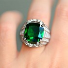 925 Silver Plate Women Emerald Fashion Wedding Engagement Ring Jewelry Simulated