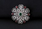 18k Two-tone Gold Over Green Emerald Wedding Brooch Pin Multi Shape With Diamond