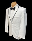 Men's Savoy White Tuxedo Jacket With Black Flat Front Pants Satin Trim 38r 32w