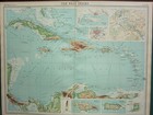 Vintage Caribbean Map Of The West Indies Wall Art Cuba Puerto Rico Jamaica 1940s
