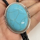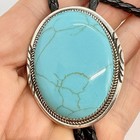 Vintage Bolo Tie Turquoise Stone Silver Sterling Western Cowboy Men Oval Navajo