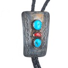 Turquoise And Coral Sterling Silver Navajo Bolo Tie