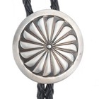 Big Vintage Navajo Sterling Silver Deep Stamped Concho Style Bolo Tie