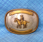 We11107 Vintage 1970s ***cowboy & Bucking Bronco*** Western Trophy Belt Buckle