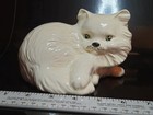 Vintage White Persian Green Eyed Ceramic Cat Kitten 8"
