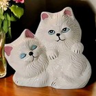 Vintage Ceramic Persian Kitten Figurines White Blue Handcrafted 1980 Cats