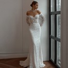 Sexy Mermaid Wedding Dresses Lace Long Sleeves Off Shoulder Bridal Gowns