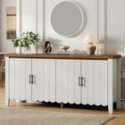 White Fluted Buffet Storage Cabinet,wood Sideboard Buffet Cabinet W/ Adjustable