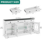 65" White Sideboard Buffet Cabinet With Glass Doors & Drawers