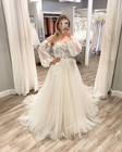 Elegant White Wedding Dress Lace Sleeves A-line Bridal Gown Size S Built-in Cups