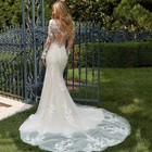 Lace Mermaid Wedding Dresses Backless Appliques Beaded Court Train Bridal Gown