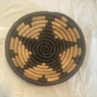 Vtg Ethnic 2 Tone Wicker Rattan Basket Bowl Wall Hanger 12" Dished Decor Rustic