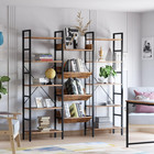 Triple Wide 5-tier Industrial Bookshelf With Metal Frame For Home & Office
