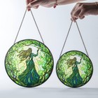 Stained Glass Window Panel Victorian Tiffany Style Round Suncatcher Art Glass