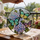 Butterfly Hydrangea Suncatcher, Stained Glass Style Floral Window Hanging, Color