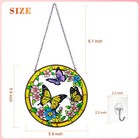 Stained Glass Window Hanging, Blue Iris Flowers Butterfly Suncatcher Diamond Col