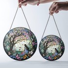 Peacock Stained Glass Window Hangings, Hand-painted Glass Suncatcher Panel With