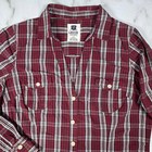 Levis Womens Collared V-neck Roll Tab Long Sleeve Shirt Top Blouse Red Us Size L
