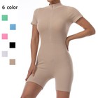 Women's One Piece Zip Bodycon Jumpsuit Workout Ribbed Short Sleeve Sport Rompers