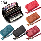 Rfid Blocking Leather Zip Wallet For Women Credit Card Holder Organizer