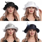 Women Dress Church Wedding Feather Satin Kentucky Derby Sun Hats