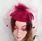 Fascinator Hat Veil Feather Hair Clip Rose Tea Party Pillbox Derby Babeyond Red