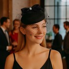 Black Feather Mesh Fascinator Veil Hat Hair Clip Band Wedding Tea Cocktail Party