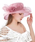 Women Organza Fascinator Kentucky Derby Hat Wide Brim Church Tea Party Dress Hat