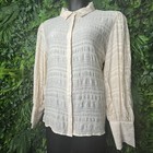 Guess Women Tops Xl Beige Crinkle Blouse Collar Long Sleeve Msrp$89.00 Nwt 0201