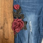 Machine Brand Ripped Embroided Women Rose Flower Soft Floral Denim Blue Jeans 5