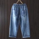 Casual Womens Floral Denim Harem Pants Ripped Jeans Loose Elastic Waist Trousers