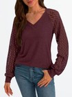 Women's Lace V-neck T-shirt Loose Casual Blouse Long Sleeve Summer Tops Pullover