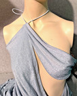 Womens Off Shoulder Cut Off Dress Long Evening Blue Glitter Sexy Club Dress Sz L