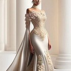 Elegant Long 3d Flowers Evening Dresses For Women Satin Mermaid Prom Party