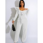 Jumpsuits For Women Elegant Sexy Long Sleeve Long Straight Pants, Small, White