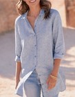Tahari Tunic Top L 100% Linen Lightweight Button Down Shirt Roll-tab Sleeves
