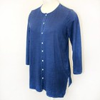 Sigrid Olsen Striped Linen Shirt Womens L Blue Coastal Nautical Fisherman Resort