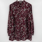 J. Jill Top Women's Large Burgundy Floral Long Sleeve Button Tunic Shirt Blouse