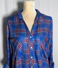 Ruby Rd Tunic Blouse Top Shirt Women 1x Roll Tab Sleeve Button Up Plaid Blue $64