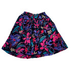 Vtg 80's Skirt Medium Black Floral Colorful Pockets Elastic Waist Woven Rayon A