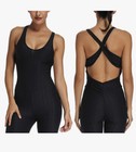 Black Womens Sports Jumpsuit Gym Fitness Butt Lifter Leggings Workout Xl