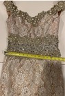 Vintage Champagne Floral Lace Cocktail Dress, Cap Sleeve Midi Dress